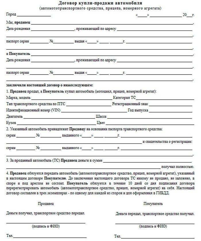 Инструкция по заполнению и составлению бланка Договора купли продажи автомобиля 2020 в простой письменной форме