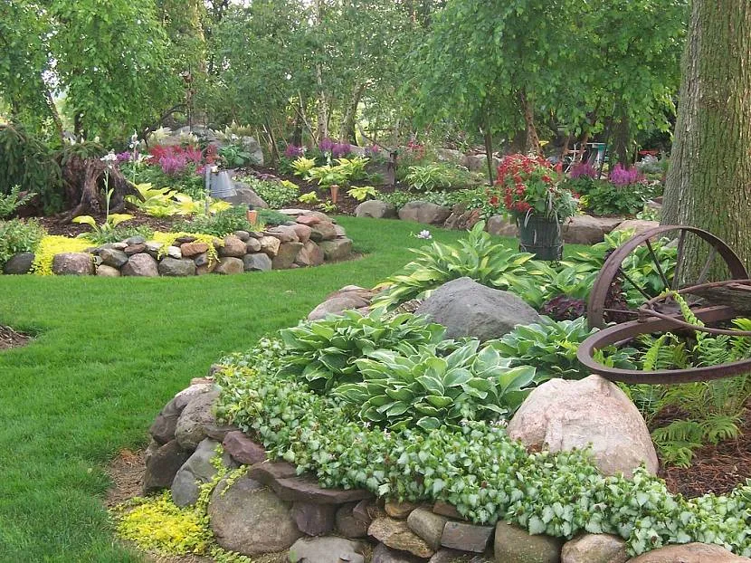 Цветник устраивают на ней, у подножия или над вершиной. Главное правило – уклон в 10°, который нужно соблюдать при укладке камней.