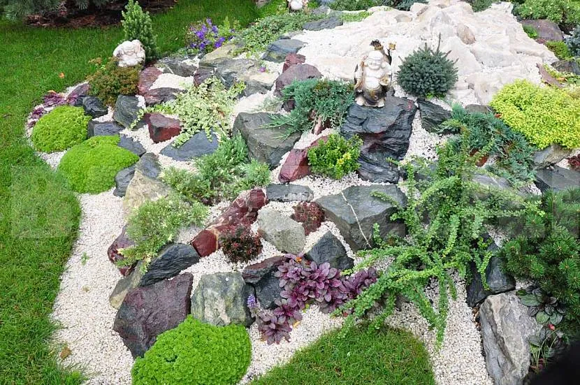 При выборе породы для создания альпинария обратите внимание на известняк, гранит, песчаник. Для декорирования водоема отдавайте предпочтение более прочным породам, которые устойчивы к вымыванию, например, гранит, мрамор, гнейс, кварцит