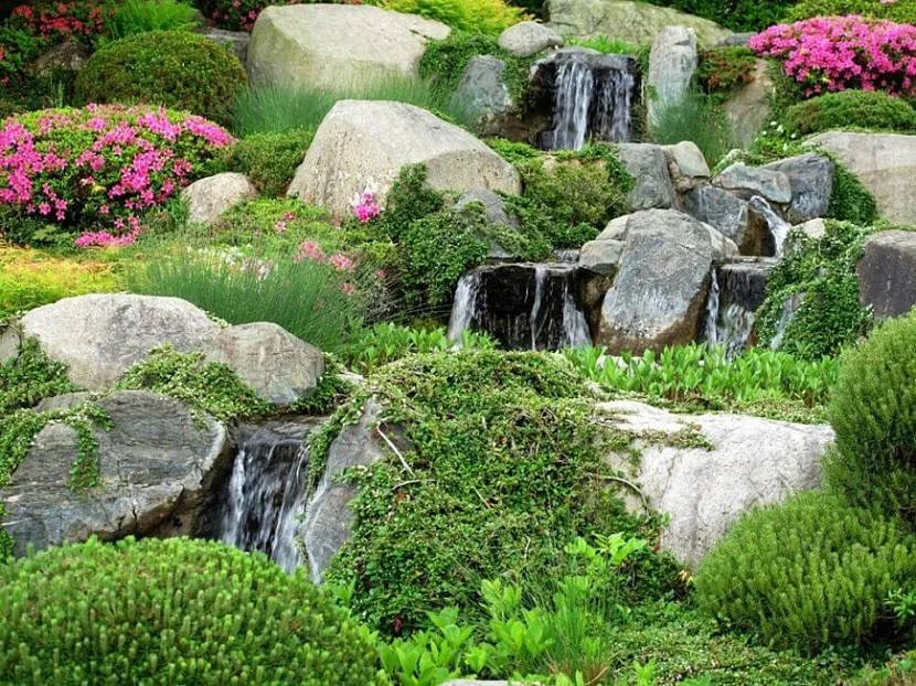 Важно: не стоит размещать альпийскую горку такого типа под большими деревьями или кустарниками. Опавшая листва будет постоянно засорять воду