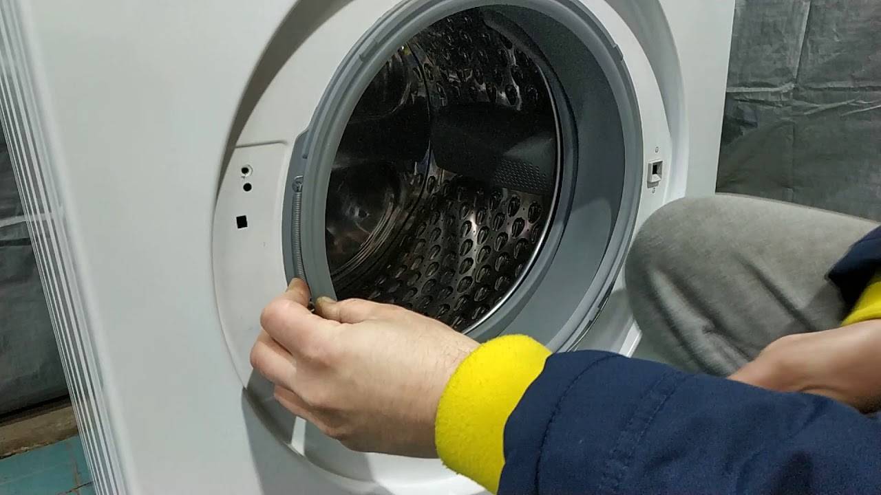 - Снимите манжету люка: отодвиньте, подденьте хомут (металлический), потяните.