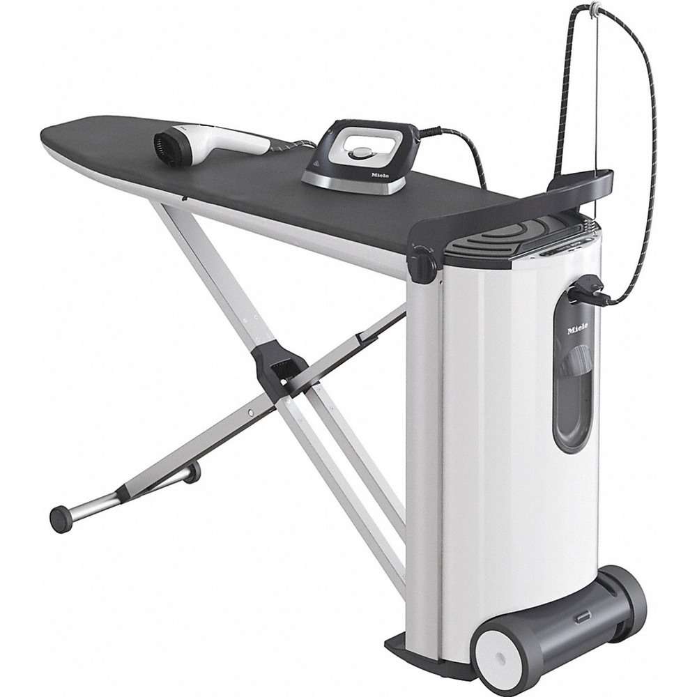 Модель Miele B3847 выполнена в лаконичном черно–белом дизайне. Включает в себя отпариватель, доску, утюг и парогенератор. На дисплее отражается ход работы устройства и установленные настройки. Это позволяет точно контролировать функционирование устройства. Система легко собирается за счет специальной технологии 1–2 Lift System и так же без проблем разбирается, что обеспечивает удобство хранения. Вертикальный отпариватель легче утюга, им проще обрабатывать вещи. Но в то же время, он генерирует то же количество пара под тем же давлением. Сотовая конструкция подошвы Honeycomb Soleplate мгновенно подает пар через отверстия между сотами. Так обеспечивается равномерное распределение пара, а также мягкое и плавное скольжение утюга по поверхности. Сухой пар подается под давлением 10 бар в объеме 100 г/мин.