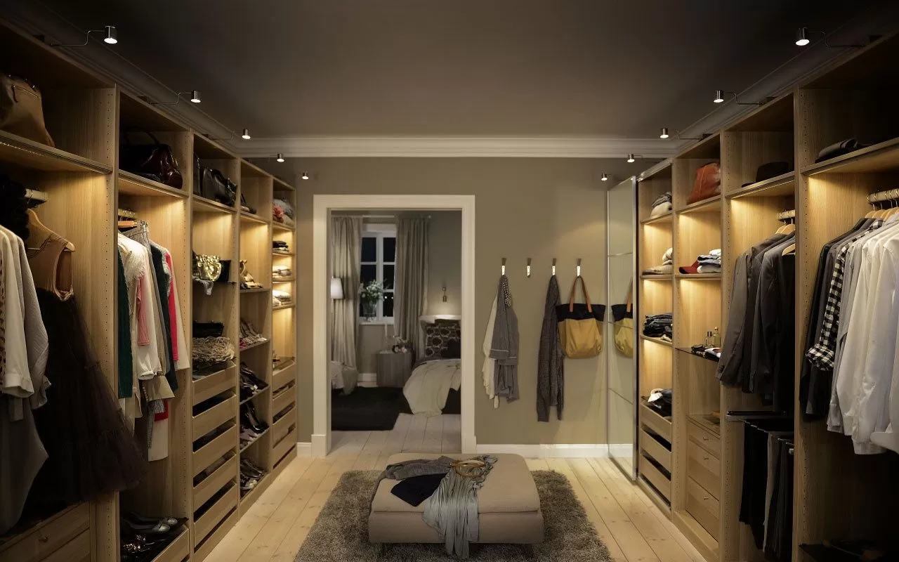 Вот как гармонично смотрится гардеробная система со встроенной подсветкой.