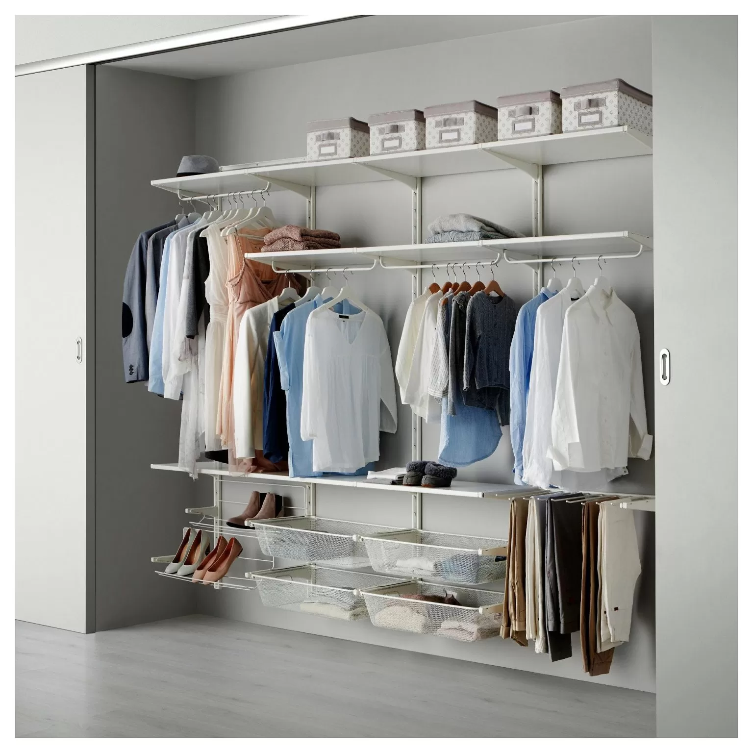 Такие системы можно устанавливать в гардеробной комнате. Благодаря вместительным корзинам там можно хранить множество вещей.