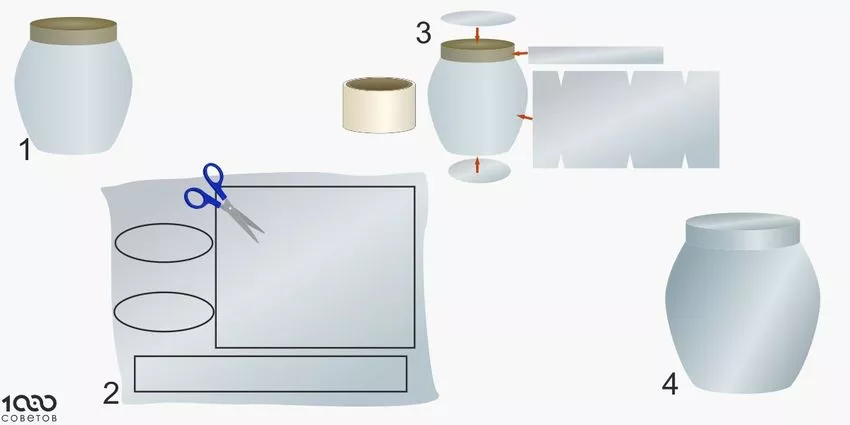 Утеплитель следует раскроить в соответствии с размерами имеющейся банки — крышки, дна, и высоты банки