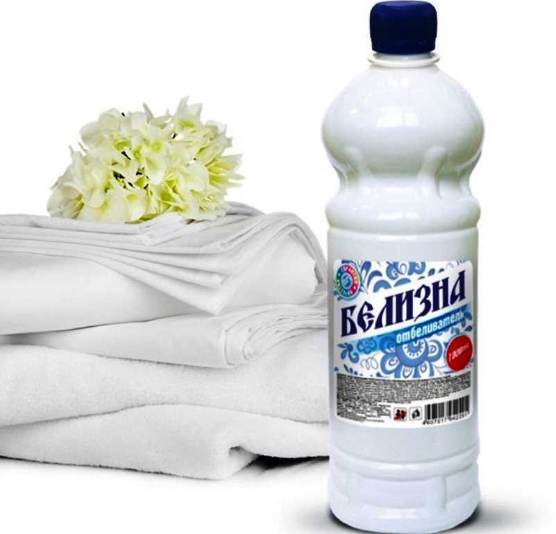 Белизна способно отбеливать вещи за счет атомарного кислорода, который выделяет гипохлорит натрия после растворения в воде. Отбеливать этим средством можно вещи из льна и хлопка. Нельзя использовать его для шелка, шерсти и кожи.