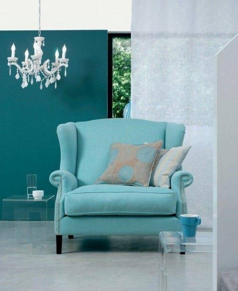 Способность сине-зеленой гаммы гармонично вписываться в интерьер ценят дизайнеры. Бирюза может быть основой обстановки, а может присутствовать в виде сочных акцентов. Причем всевозможные цветовые сочетания способны придавать залу разные настроения, все зависит от предпочтений хозяев и дизайнерского стиля.