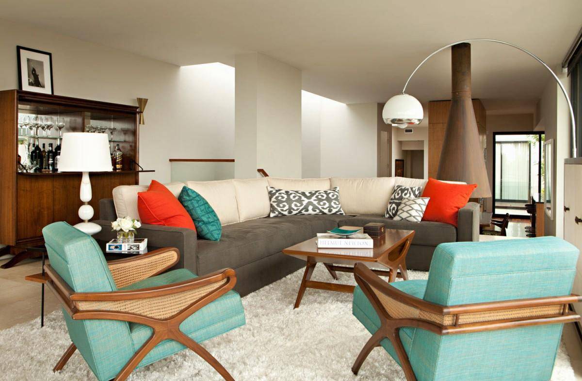 В дизайне гостиной бирюза очень активно используется как в качестве основы, так и для расстановки акцентов. Дело в его двойственной природе. Синий и зеленый в его основе расширяют возможности сочетания с другими красками. Поговорим о них.