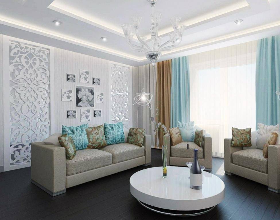 Для гостиной с преобладанием нейтральных оттенков в качестве украшений подойдут бирюзовые: