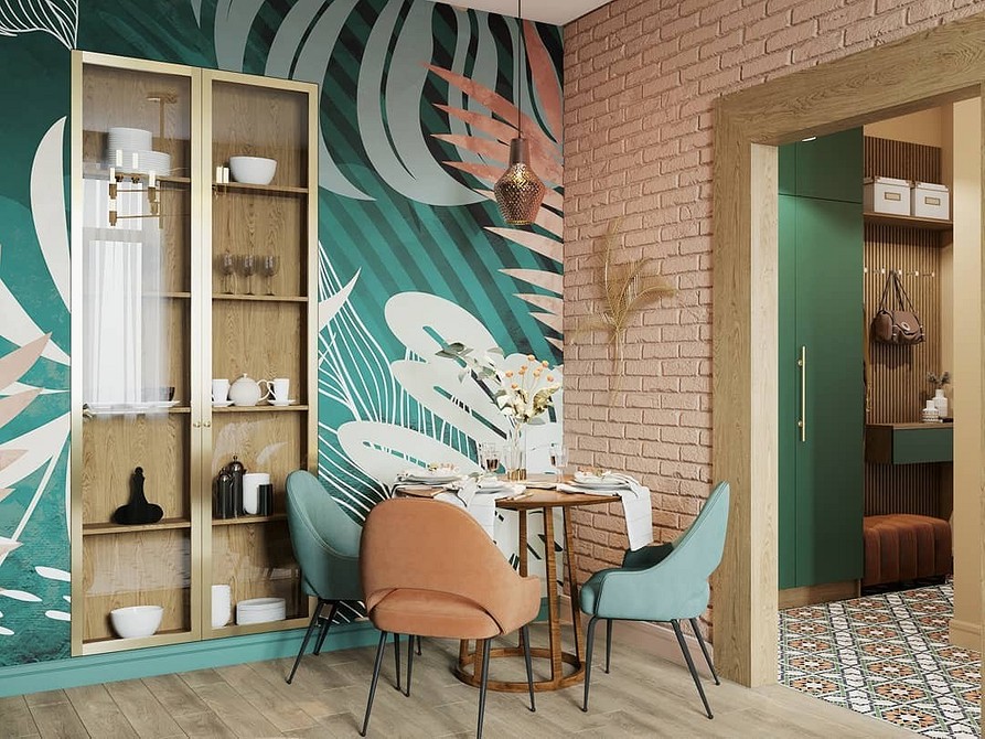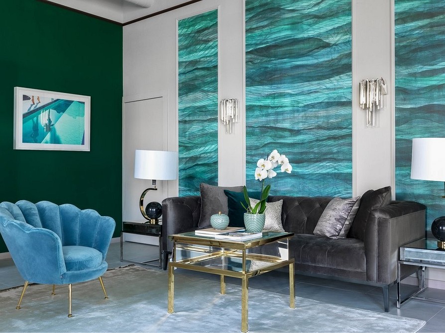 Классические дизайны можно дополнить элементами из темной бирюзы, а обои, приближенные к ярко-зеленым оттенкам, могут использоваться для создания акцентов в таких направлениях, как модерн, арт-деко, лофт и многих других.