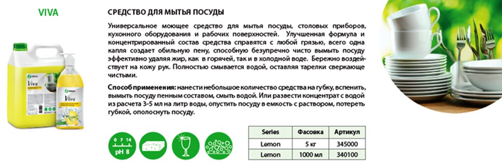 Универсальное моющее средство от отечественного производителя Grass является концентрированным, характеризуется большим количеством пены. Одной капли вполне достаточно для хорошего результата.