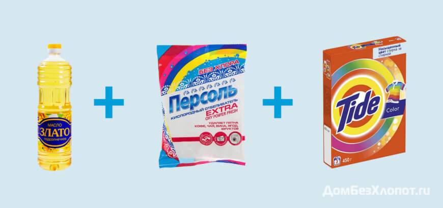 Подсолнечное масло, кислородный отбеливатель и порошок