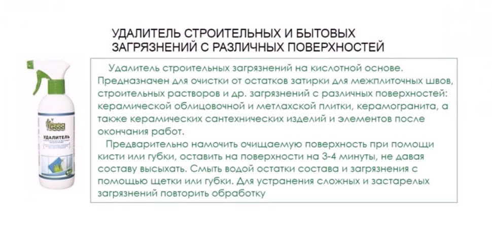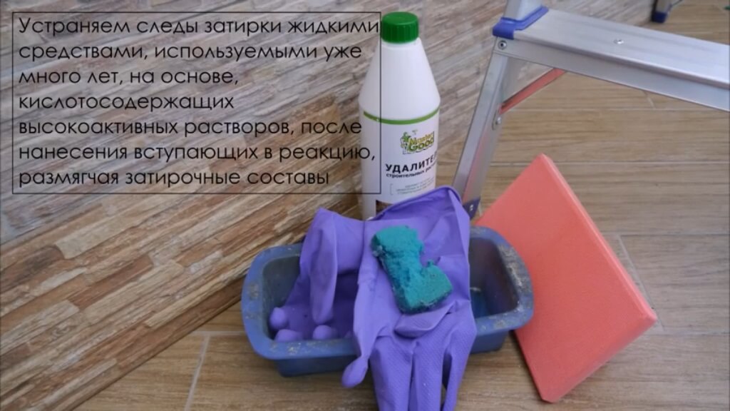 - Очистительные препараты — находят свое применение в ситуации с еще не застывшей затирочной пастой посредством обработки полотна губкой;