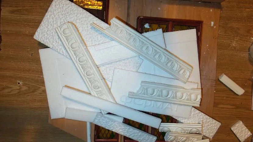 Кроме утепления, пенопласт внутри помещений часто используется в виде декоративных и художественных элементов (багеты, различные имитации лепнины, художественный декор, плинтуса и т. п.). Но чтобы отделка получила завершенный вид, всем элементам декора нужно придать соответствующий цвет, грубо говоря, покрасить.
