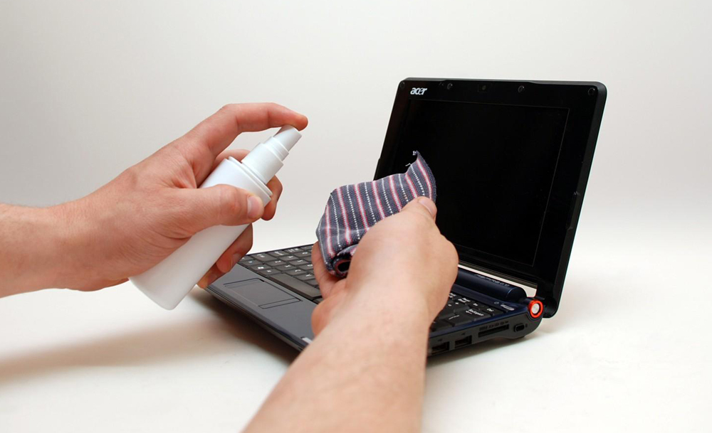 - можно приобрести в магазине бытовой техники специальные средства по уходу за ноутбуком (влажные салфетки, растворы, гели, аэрозоли и прочее);