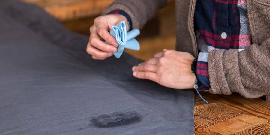 Для начала через отверстие в клапане вытягивают поврежденный участок наружу. Обезжиривают поверхность и приклеивают латку обычным способом с изнаночной стороны. После ремонта изделие лучше не трогать в течение суток (в крайнем случае, не менее 12 часов). Только после этого вывернуть и эксплуатировать.