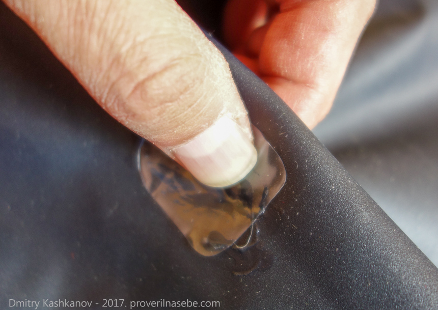 При помощи спирта обрабатываем поверхность и даем высохнуть. Затем вырезаем заплатку и наносим тонкий слой клеящего вещества. Для качественного скрепления нужно крепко держать склеиваемые части 3–4 минуты.