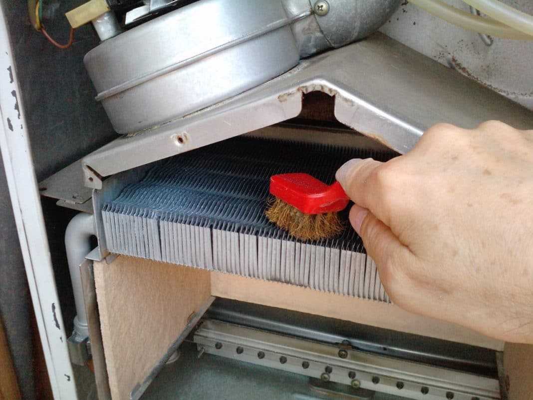 Почистить теплообменник газового котла можно разными способами, но чаще всего в домашних условиях выбирают механическую чистку. Для этого необходимо подготовить отвертку и гаечный ключ, ершик и щетку по металлу. Для начала отключается подача газа, датчики и снимается крышка котла. Демонтируется теплообменник и с помощью приготовленных приспособлений проводится чистка внутренних и внешних частей.