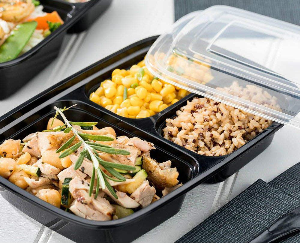 Разнообразие менажниц не заканчивается на красивой посуде из хрупких материалов, которую используют для украшения стола и экономии места. Современная промышленность позволяет использовать варианты из пищевого пластика. Они представляют собой большие контейнеры, внутри которых секции-лоточки из того же пластика. Такая модель нужна для распределения порций еды и их транспортировки.