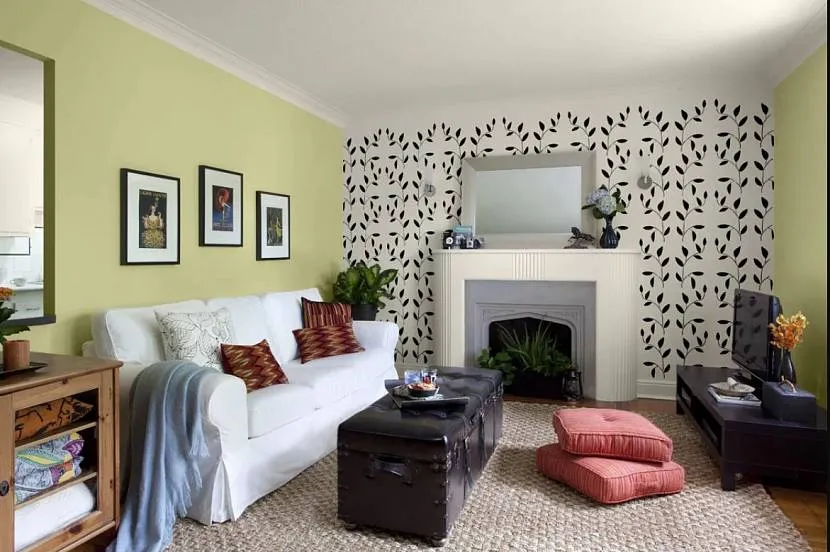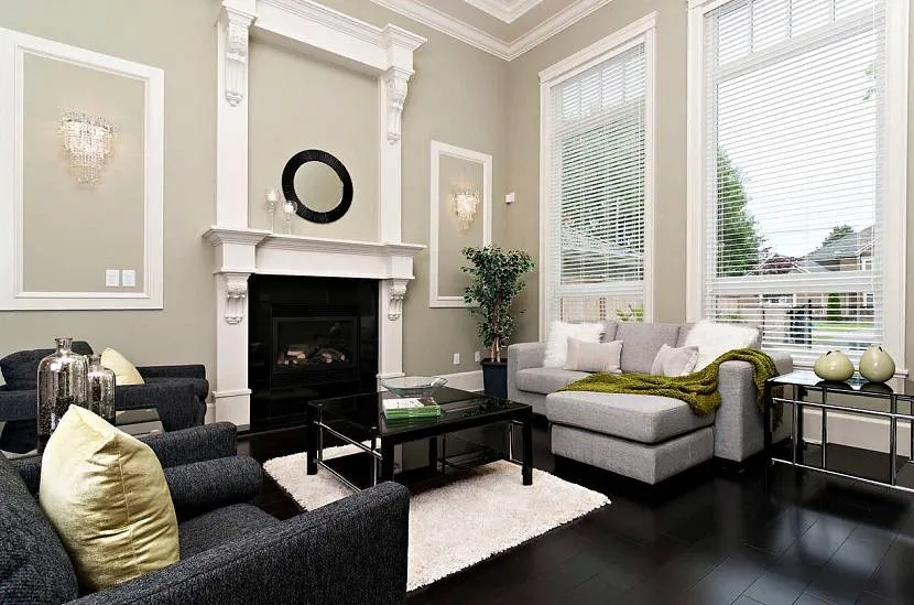 Цвет стен в гостиной может быть выполнен с использованием классических приёмов сочетания: