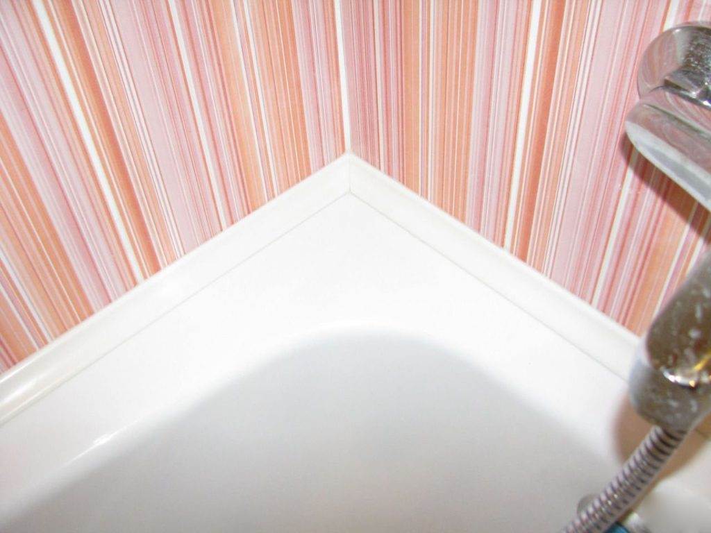 - Заделка щели пеной или цементом, а иногда и силиконом, потребует декоративного прикрытия шва. Чаще всего для этого используют пластиковые уголки. Его ширина не превышает 1,5 см. Швы более 1,3 см нужно перекрывать другим способом, например, кафелем или пластиковыми панелями.