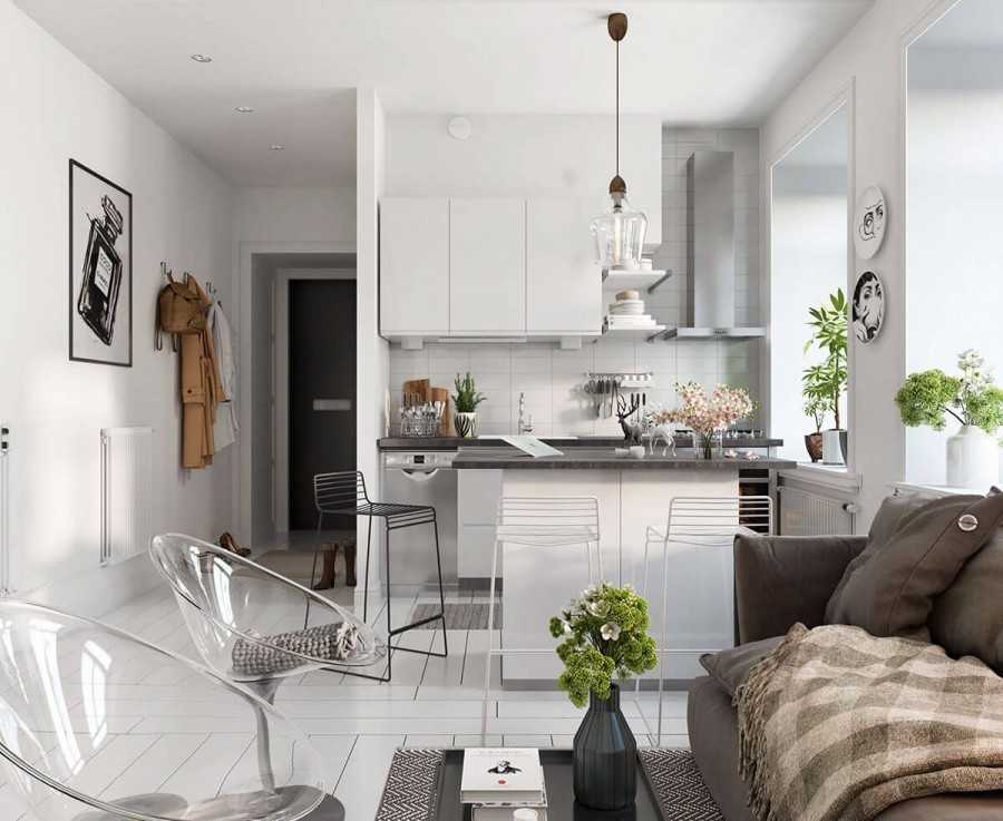 Если нет желания механически совмещать кухню с гостиной или столовой, можно совместить ее другим способом. Например, при отсутствии межкомнатной двери, оклеить обе комнаты обоями одинаковых оттенков, узоров или покрасить одним цветом.