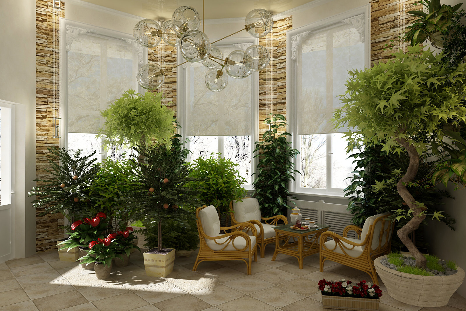 Кстати, довольно удачный вариант размещения светолюбивых растений — эркерная зона. В ней можно собрать настоящий зимний сад.