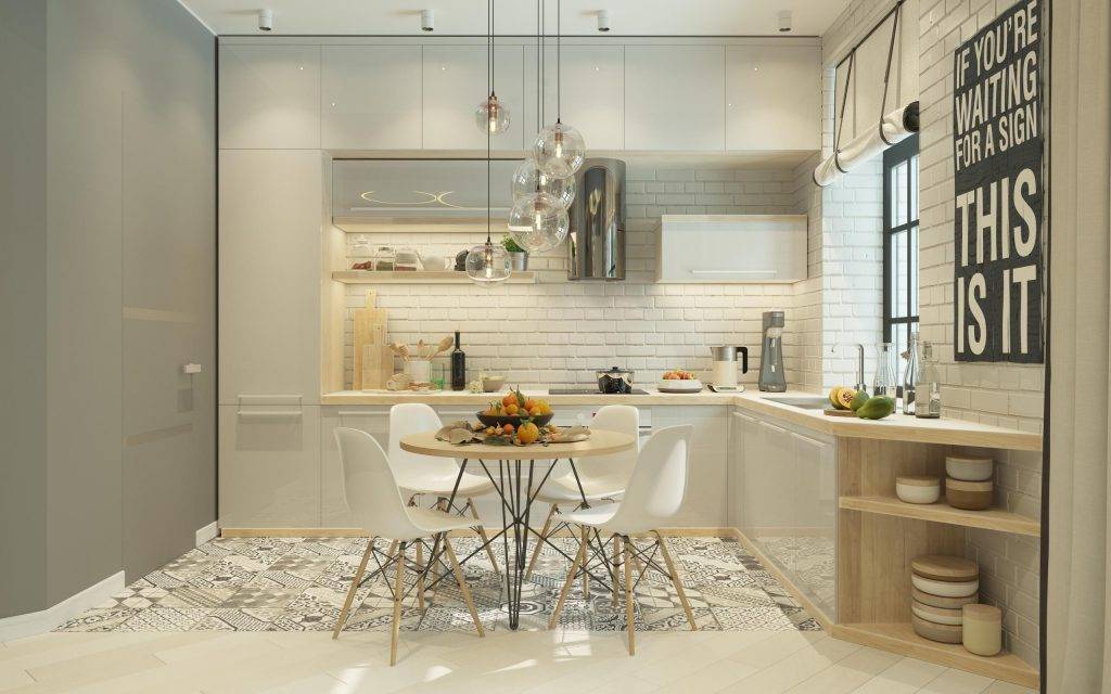 Светлые оттенки помогают зрительно увеличить пространство, поэтому идеально подходят для кухни небольшого размера.