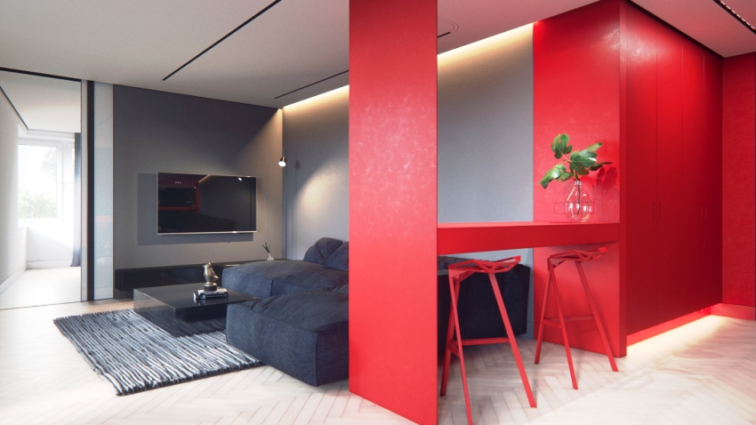 Избыток красного даже в очень просторном помещении может утомлять, вызывать дискомфорт и раздражение
