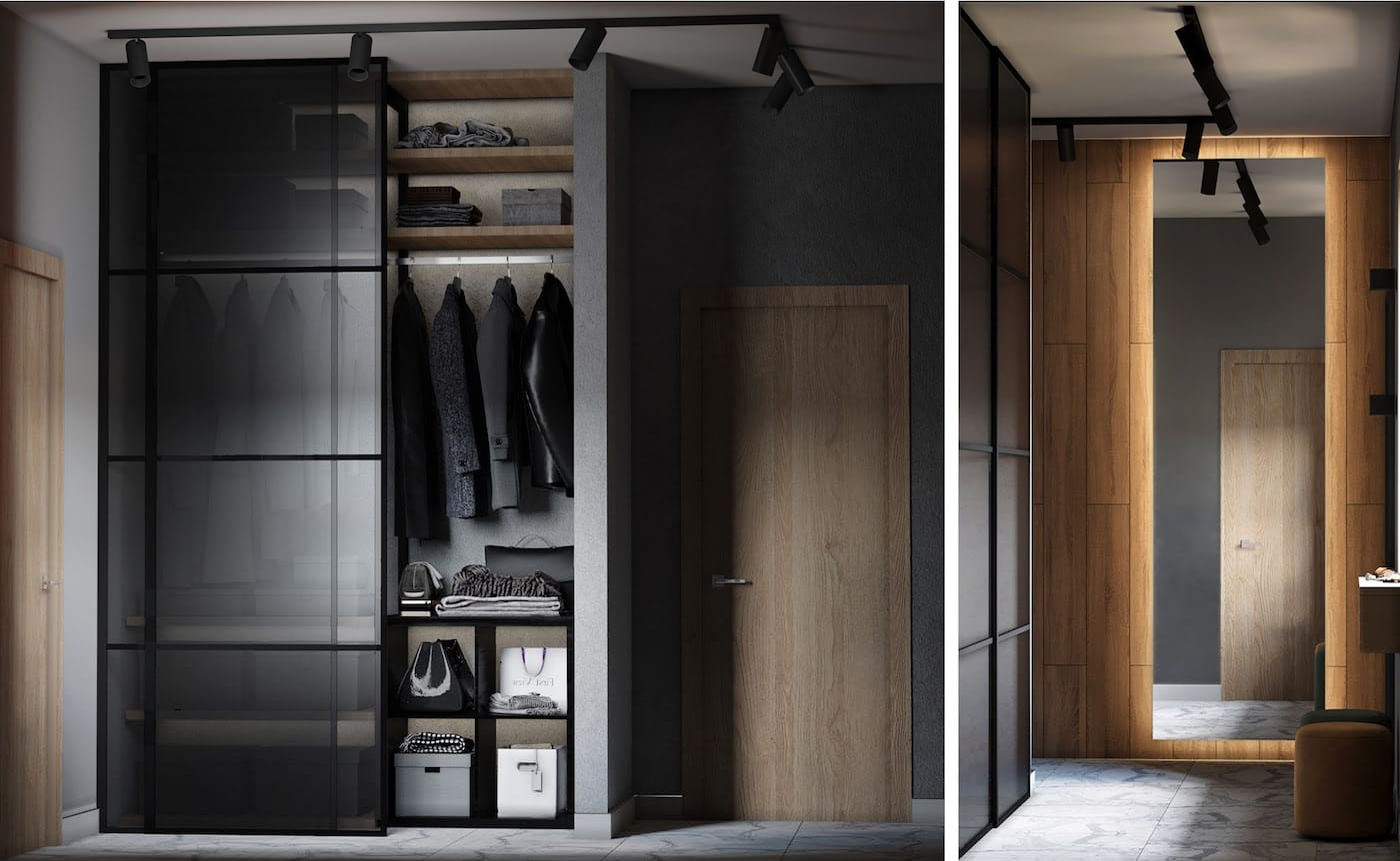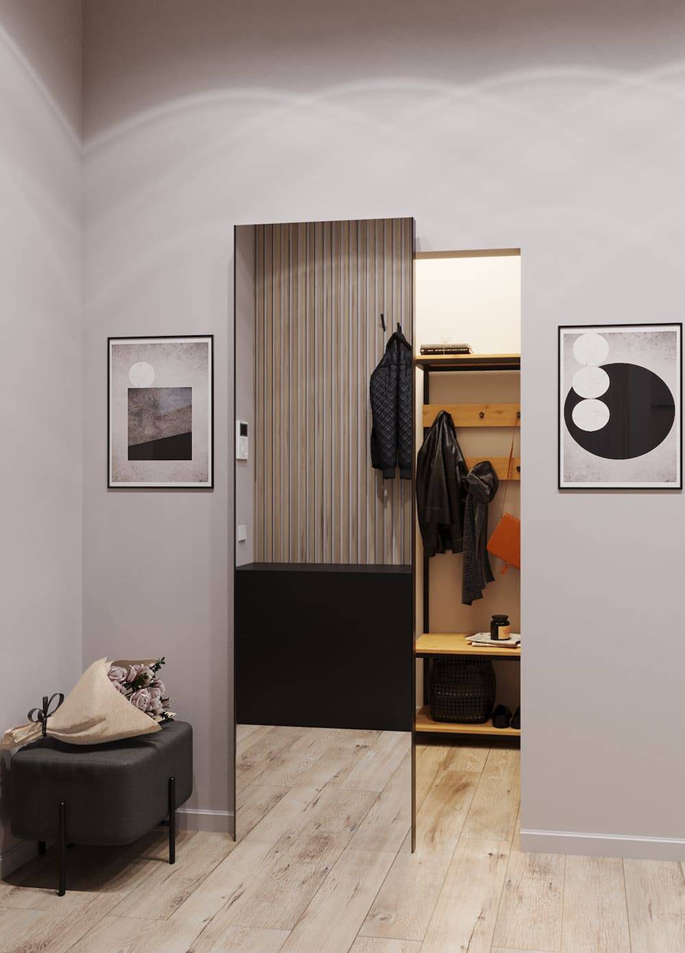 Как можно визуально облегчить прихожую и сохранить количество мест для одежды?