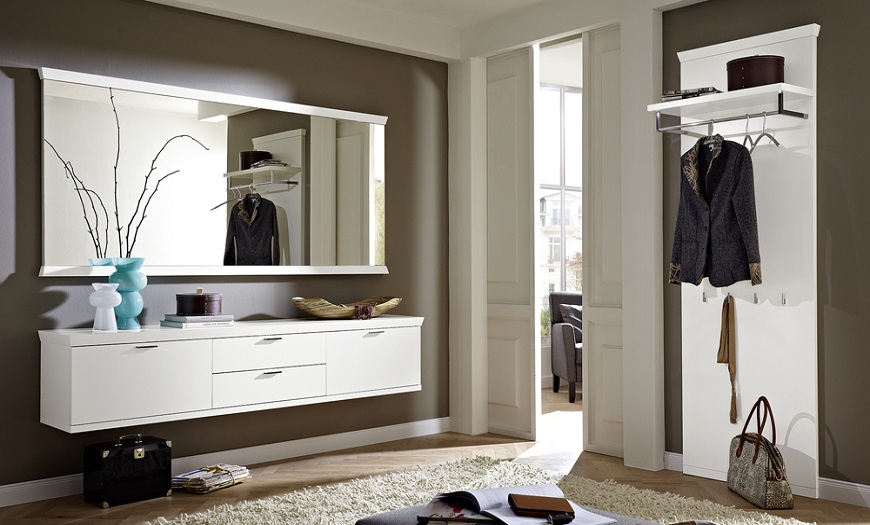 Для небольших прихожих предпочтительным вариантом будет гарнитур белого цвета. Даже при больших линейных размерах он будет выглядеть не столь внушительно. Фото мебель в прихожую являются хорошей демонстрацией данного эффекта.
