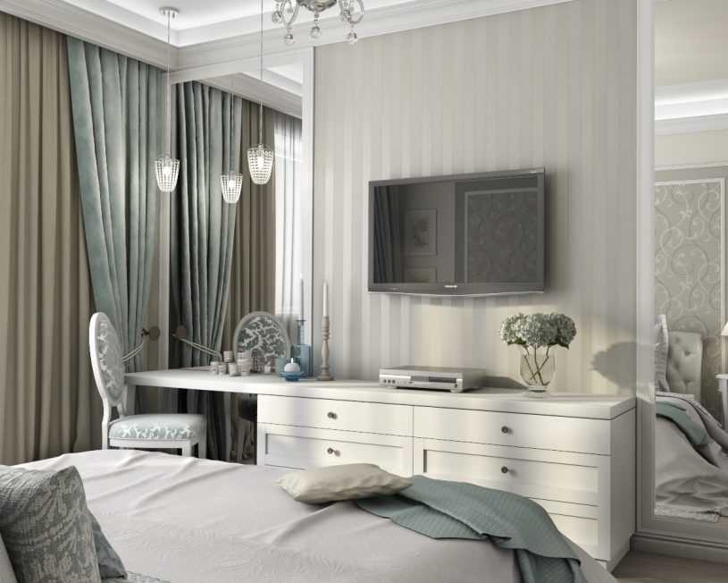 От рабочего стола придется отказаться – в классический интерьер комнаты отдыха он не вписывается. А вот туалетный столик небольшого размера, отличающийся изяществом форм, вполне уместен; зеркало в спальне придется как нельзя кстати.