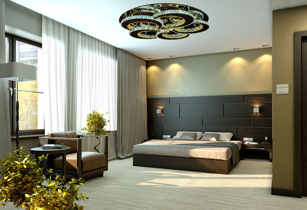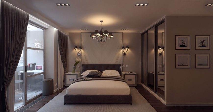 Спальня в современных квартирах и частных жилых домах предназначена исключительно для сна, что обязывает хозяев обустроить не только верхний свет, но также комфортное фоновое освещение с управлением около кровати. Наиболее популярные дизайнерские приёмы при обустройстве освещения спальни: