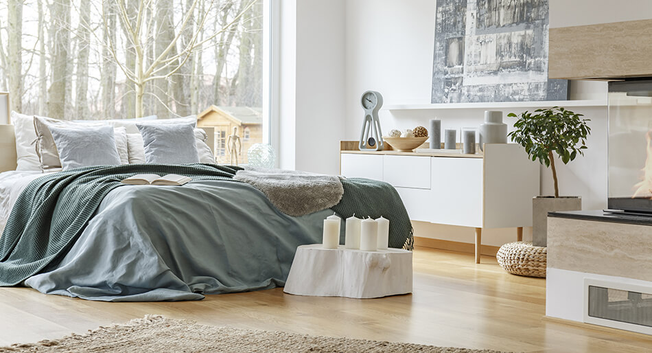 Полы в спальной комнате должны быть тёплыми. Основным материалом для этого могут служить ламинат и паркет из натурального дерева.