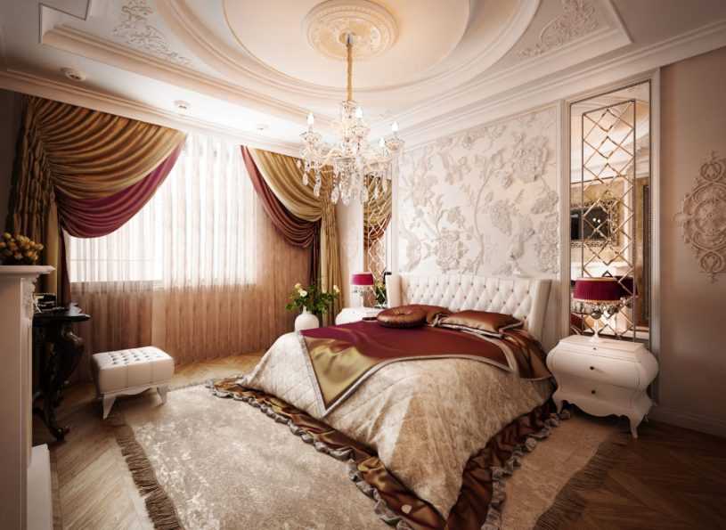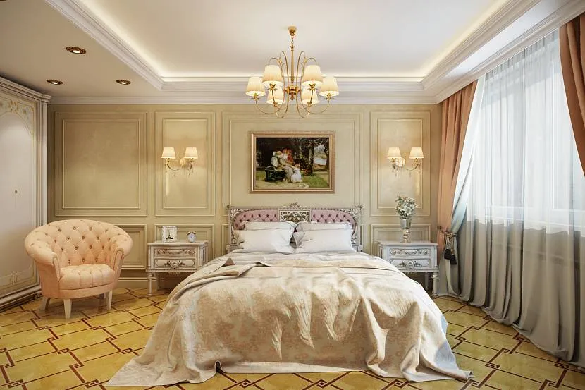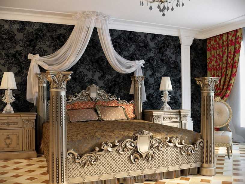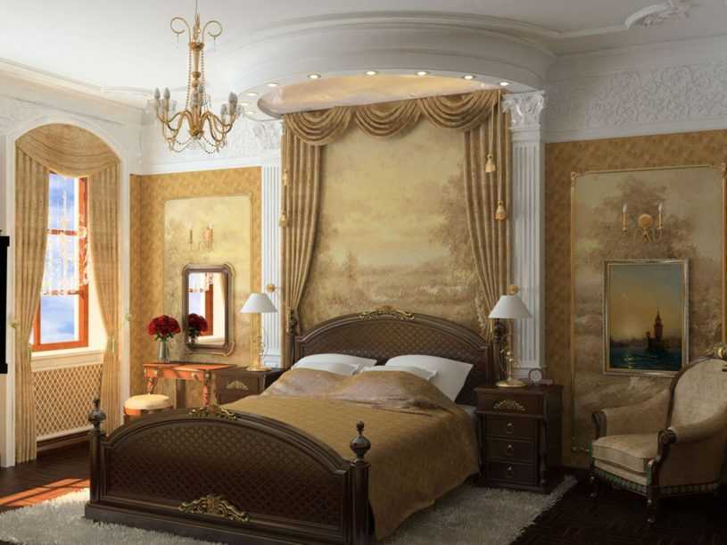 Классический интерьер спальни стремится повторить совершенство и уют императорских дворцов и королевских покоев