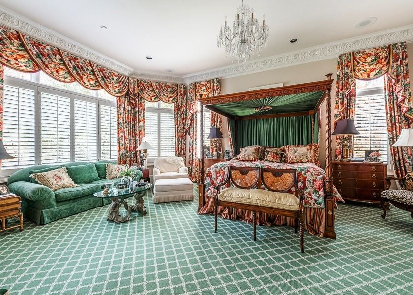 Величественность обстановке придают дорогой текстиль, натуральная меблировка и изящные аксессуары.