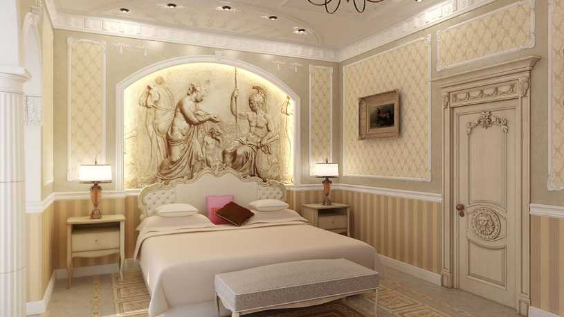 Это направление соединяет в себе греческую и римскую составляющие. Хотя они довольно разные, но для оформления дизайна спальни в классическом стиле принято соблюдать общие правила: