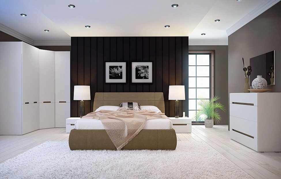 Для спален с большой площадью тёмные тона цветовой гаммы будут предпочтительнее.
