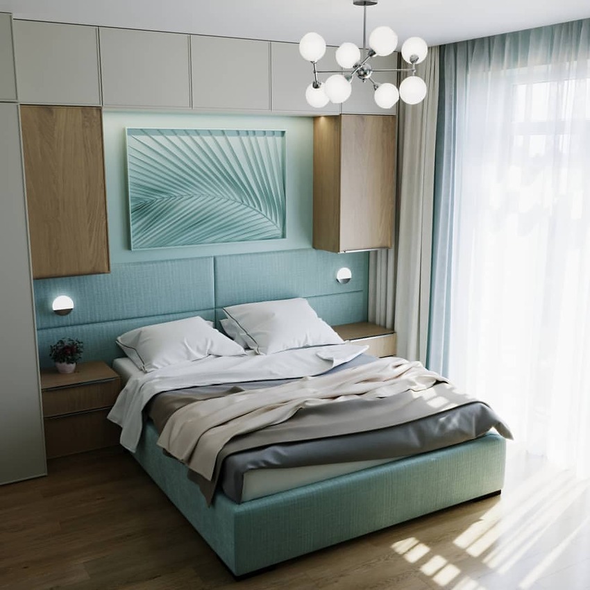 При этом бирюзовый цвет важно держать в балансе и соблюдать осторожность при добавлении в интерьер. Эту цветовую палитру стоит использовать в качестве акцента, иначе спальня будет казаться слишком пестрой