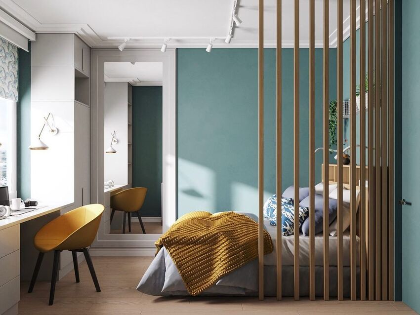 - Не хотите перегружать комнату? Тогда подойдет светлая палитра, например, тот же мятный, панг или небесный.