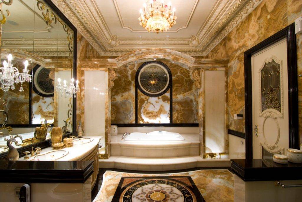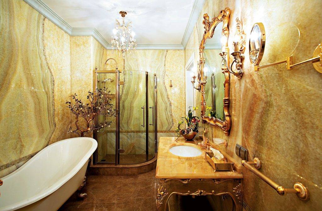 Отделка поверхностей: лепнина и плитка для ванной классического стиля