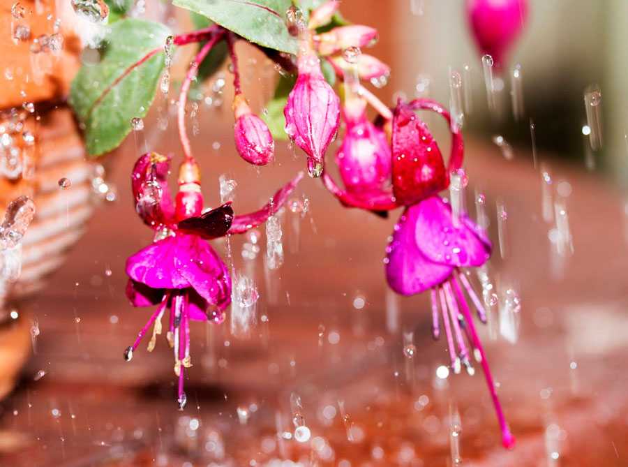 Растения впитывают воду не только корнями, но и стеблями, и листьями. Фуксии любят высокую влажность воздуха и нуждаются в опрыскивании. Растения увлажняют пульверизатором в отсутствии солнечных лучей, лучшее время – утро и вечер