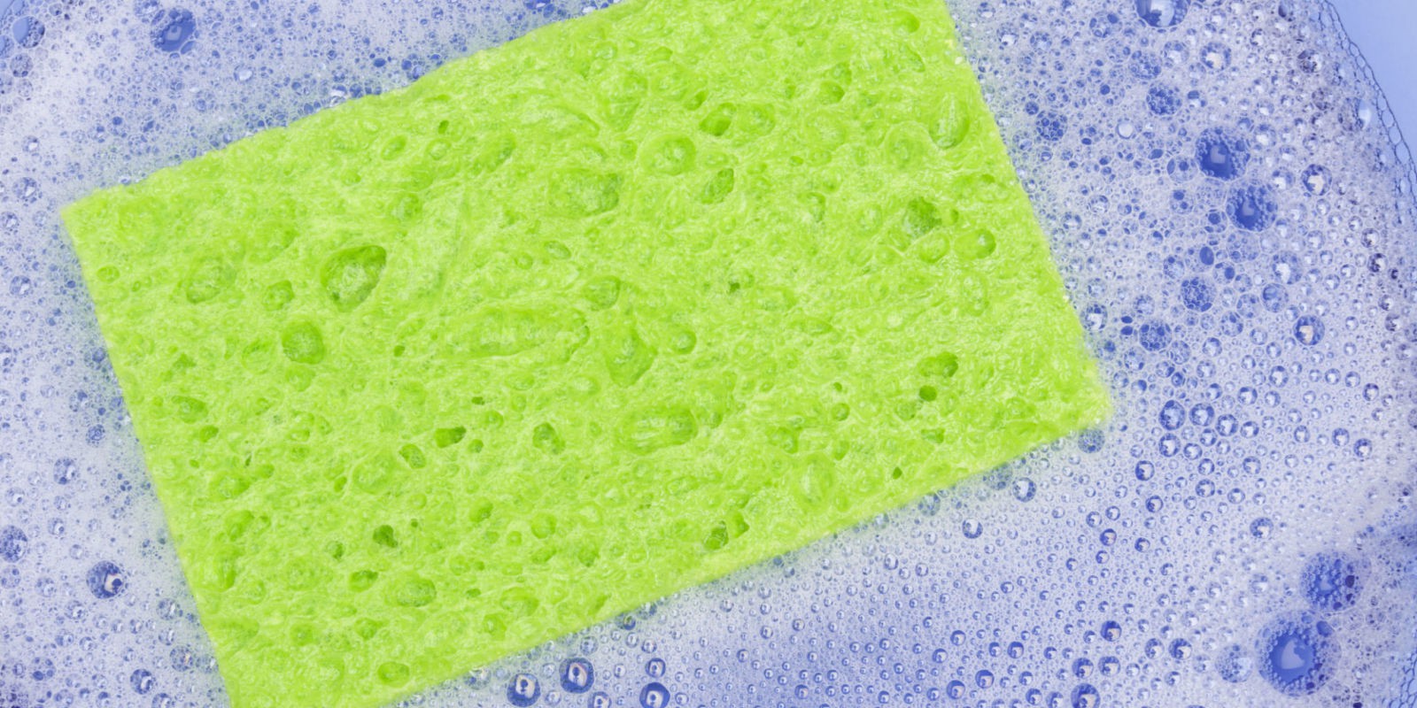 Чтобы оставить губку после мытья посуды чистой, ее надо сначала промыть хозяйственным мылом, затем замочить в растворе воды с дезинфицирующим средством. Даже после этого в порах губки присутствуют остатки жира, микрочастицы продуктов.