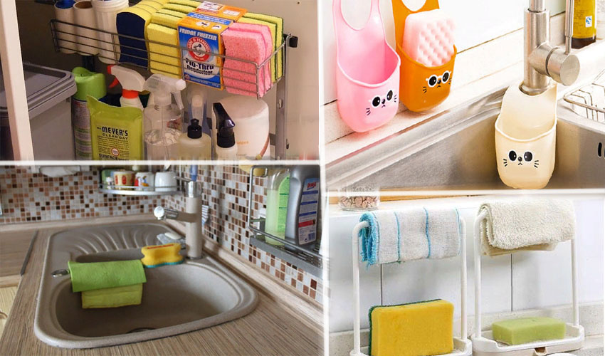 Элегантные системы хранения различных видов и материалов помогут спрятать губки для посуды от посторонних глаз. Самые популярные виды органайзеров для хранения поролоновых губок:
