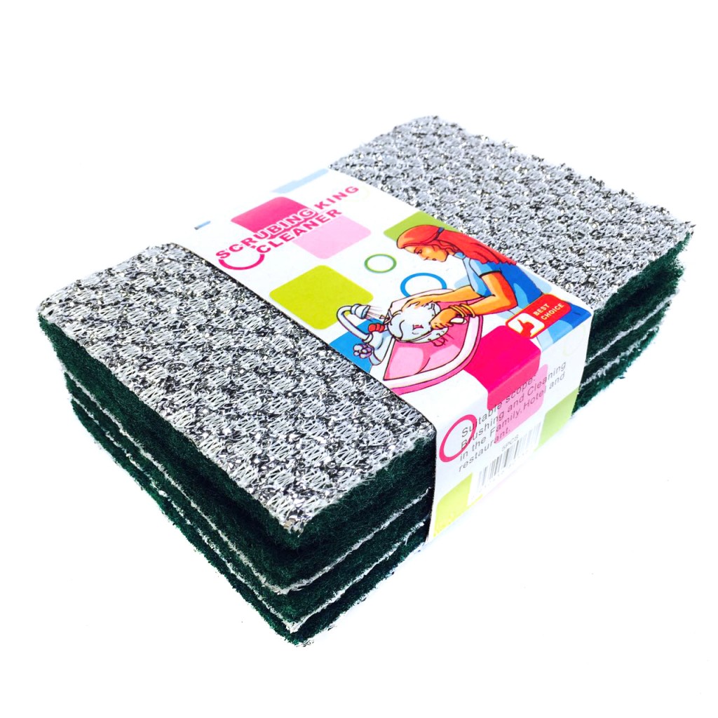 - Губка из абразива. Жесткие или абразивные губки хорошо справляются с очисткой загрязнений, с которыми чистый поролон не справится. Они имеют одну часть поролоновую, а другую абразивную. Или же выполнены полностью из жесткого материала, примером тому становятся металлические материалы.