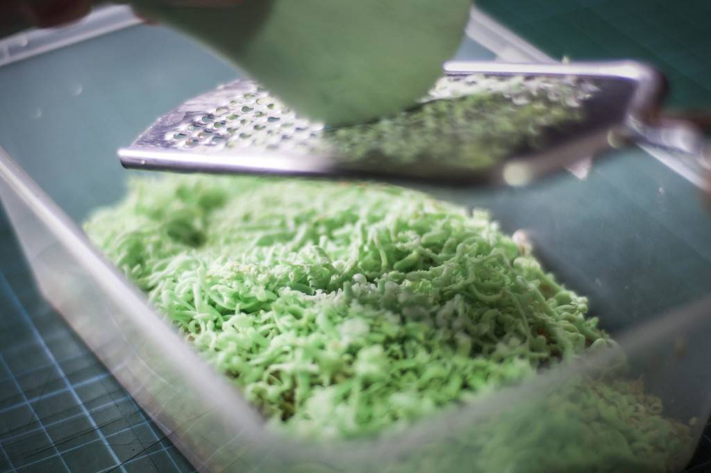 - Хозяйственное или детское мыло измельчить. Для этого хорошо подойдет мелкая терка.