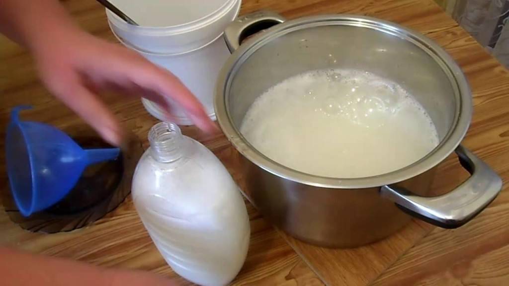 - При постоянном перемешивании дождаться полного растворения мыла, после чего долить еще 1 литр воды.