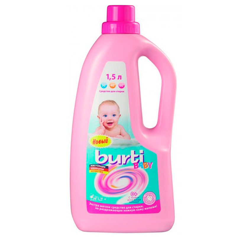- Burti Baby не всем родителям нравится из-за высокой цены и состава. Но он безопасен, легко отстирывает пятна, желтизну, удаляет запах мочи.