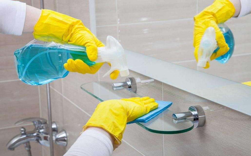 Важно продезинфицировать санфаянс, ванну, раковину, не забыв про смесители. Не забывайте про зеркала, ведь они имеют свойство запотевать, оставлять на себе разводы