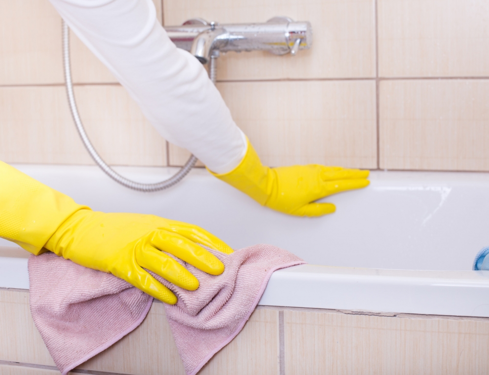 Как правило, в первую очередь необходимо уделить внимание специальным средствам, которые дезинфицируют поверхность ванной комнаты. Также обратите внимание, что для плитки необходимо использовать подходящие средства, т.к